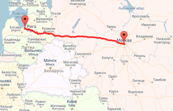 Расстояние от Москвы до Риги — 923 км; Время в пути: 11:34
