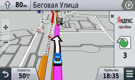 Но есть выход – получить информацию о пробках и построить маршрут с учетом заторов. Нам на помощь приходит сервис Яндекс.Пробки в автонавигаторе Garmin nuvi 65LMT.