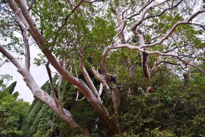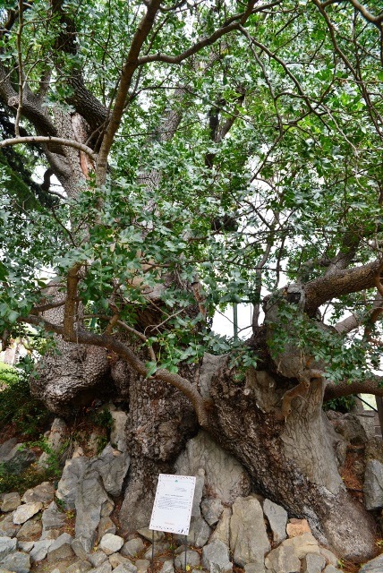 Небольшое отступление: эти самые посетители ведут себя как варвары. На протяжении всей нашей более чем часовой экскурсии гид делала замечания людям, которые отправляются через ограждения к понравившимся экспонатам, вытаптывают поверхностный слой почвы, повреждают кору. Некоторые экземпляры находятся буквально в критическом состоянии. Несколько утомленных бесцельным с их точки зрения хождением отцов семейств курили под сенью вековых маслин, приведя в шок экскурсовода: курение в парке кроме специально отведенного места между входом и туалетом строго запрещено.