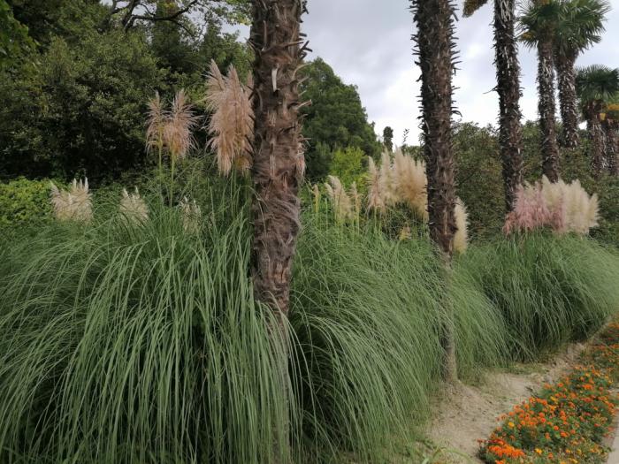 Кордатерия Селло (пампасская трава): растение родом из южноамериканских степей не случайно получило название по испанскому слову cortar, что значит «резать». А все из-за очень острых краев длинных ланцетовидных (именно так указано на сайте НБС) листьев, защищающих тонкие прямые цветоносы. Американские индейцы даже наказание придумали для местных преступников – прогоняли голым сквозь заросли пампасской травы. А вот нашему туристу все нипочем: лезут прямо в гущу с детьми и прочими товарищами для эффектного фона для фотографии.