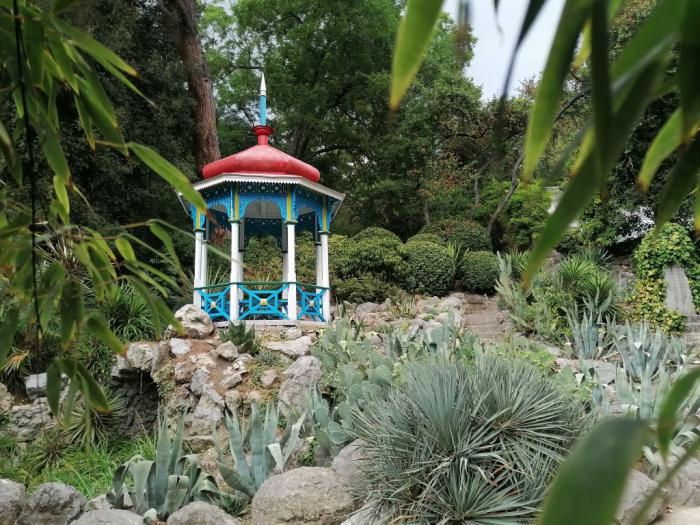 Уникальные ландшафты НБС не раз становились фоном для кинокартин. Например, эту беседку можно было видеть в «Приключениях Буратино» и «Ассе»: