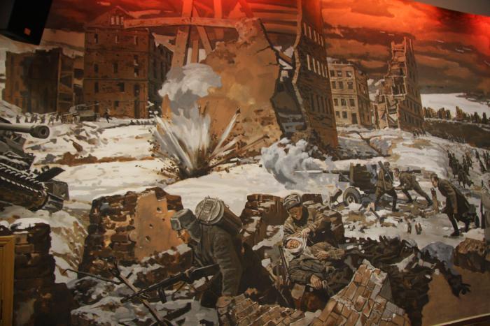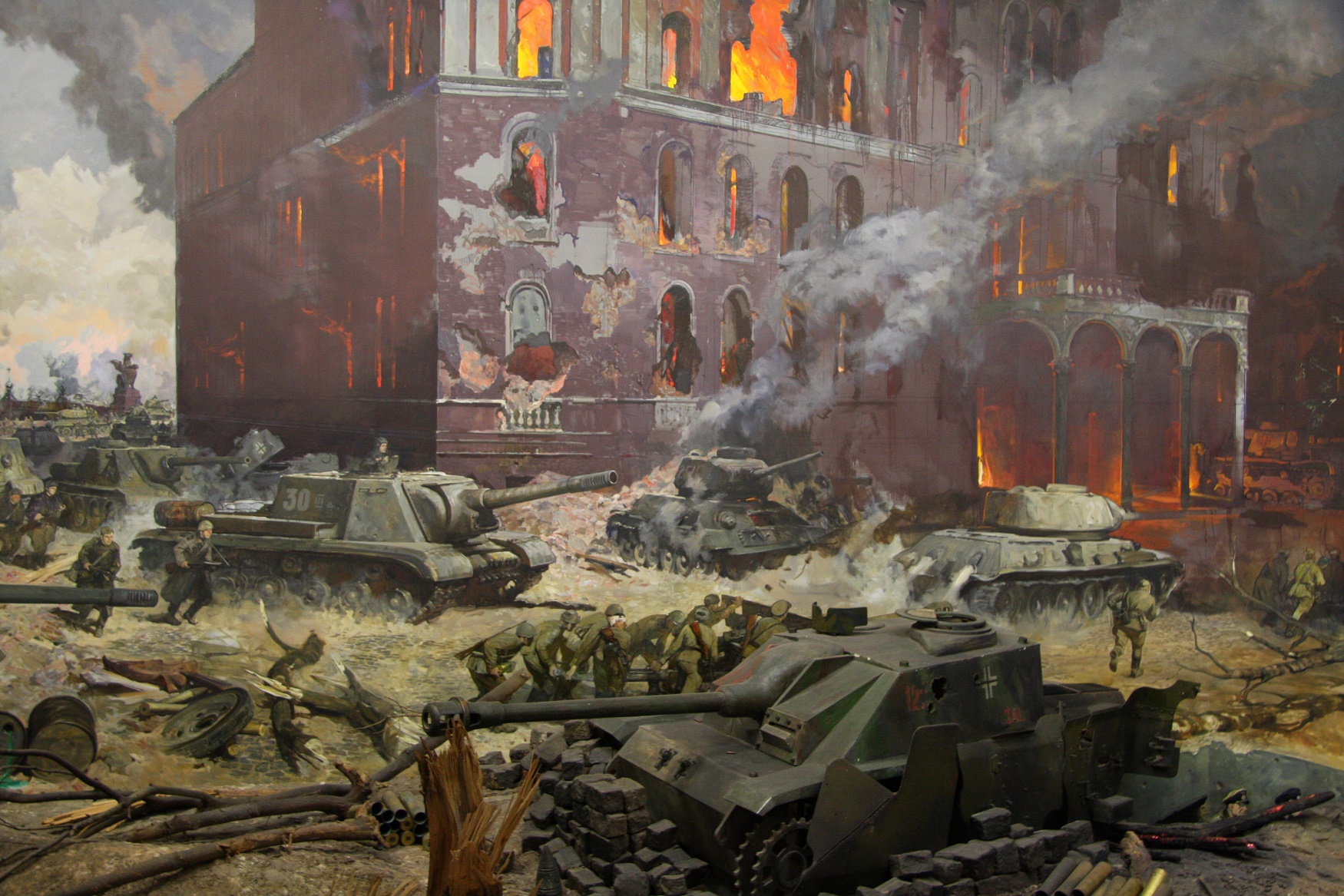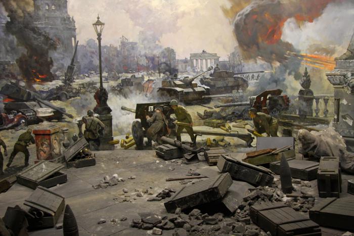 Эта композиция наиболее достоверна. Автор много времени посвятил подробному изучению городских боёв за столицу Германии, что и помогло ему создать удивительную обстановку уличного сражения. Эти бои явились триумфом советского оружия и принесли бессмертную мировую славу нашим солдатам. Берлинская операция считается самой крупной за всю Вторую мировую войну. Её итог: разгромлено 93 фашистских девизии и 11 бригад. Пленено полмиллиона солдат и офицеров врага. Длилась она с 16 апреля по 8 мая 1945 года.