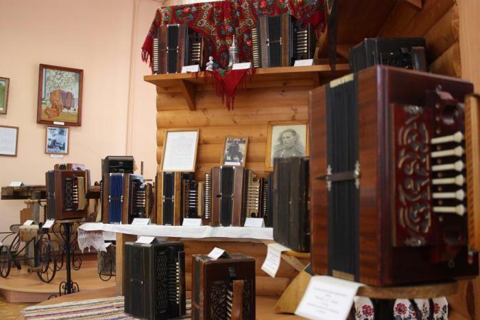 В музее всего три зала, как раз все внимательно осмотреть – и не устать. В первом — большая коллекция рояльных гармоник – их делают только в Ельце. До сих пор делают. Никаких кнопочек, только клавиши. (В эти выходные на блошином рынке Воронежа один дядечка продавал такую, новую-расписную, просил 30 тысяч… )