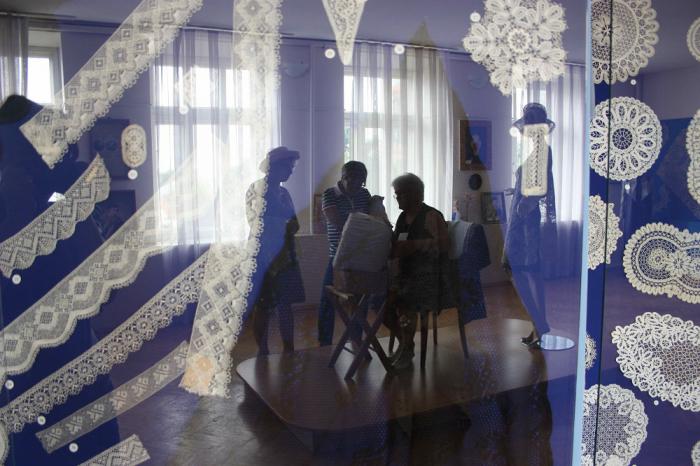 Этому промыслу чуть более 200 лет, он не из глубины веков пришел, а из-за границы, когда русским модницам надоело все «из парижу» выписывать, решили у себя кружевниц завести. Так вот и появились промыслы в Вологде, в Рязанской области, в Ельце. В каждой местности свои особенности кружевоплетения. Мастера сразу отличат. Вот эти, к примеру, бельгийские — почувствуйте разницу: