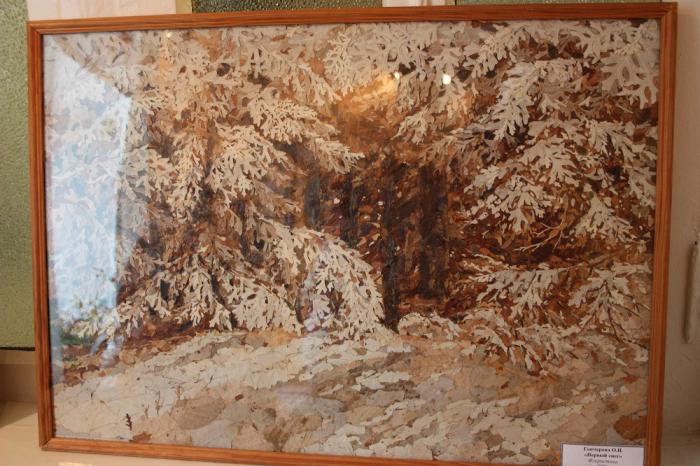 Есть тут и работы наших современников — очень оригинальные, стиль ошибана или pressed flower art — сушеная флористика, в общем: