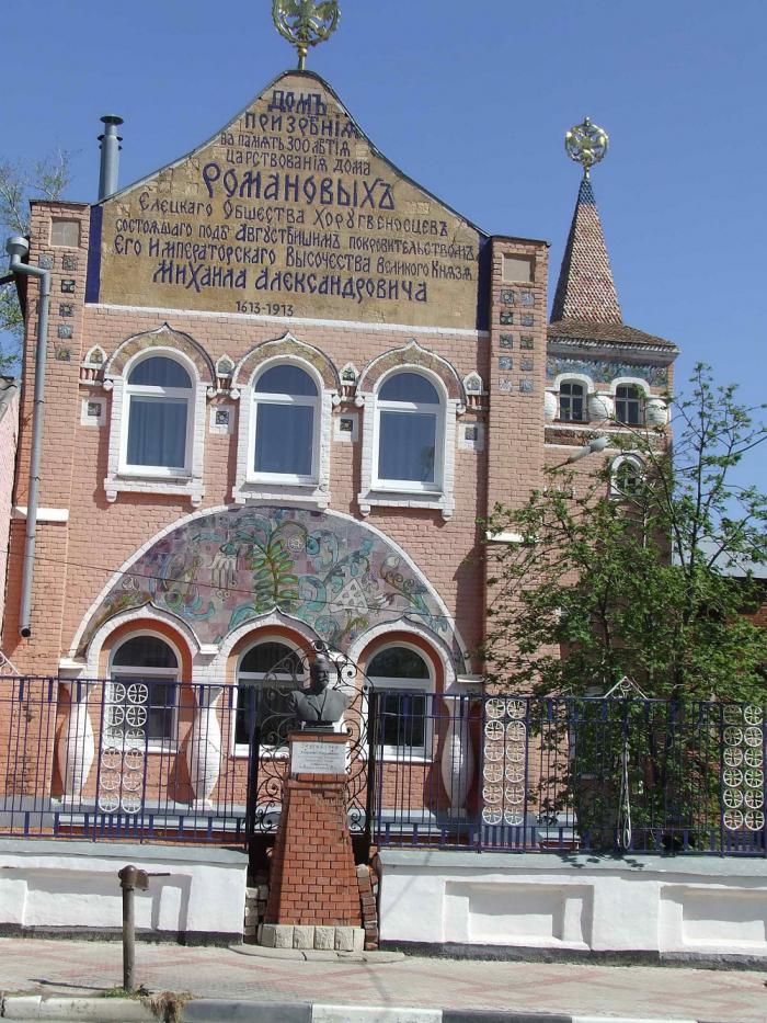Из музея ремесел мы переместились в Краеведческий – они на одной улице Ленина. Краеведческий расположился в одном из бывших домов Заусайловых – сам дом как-то забыла сфоткать, это из интернета, в розовом еще цвете, нынче он голубой. (В Ельце любят, видимо, все перекрашивать кардинально. Три года назад Вознесенский собор был еще зеленым, сейчас- желтый..).