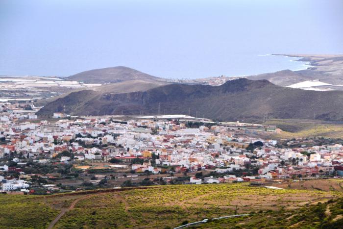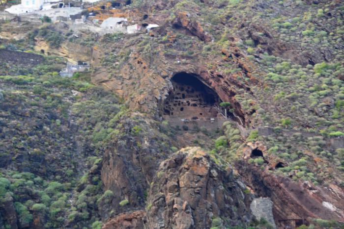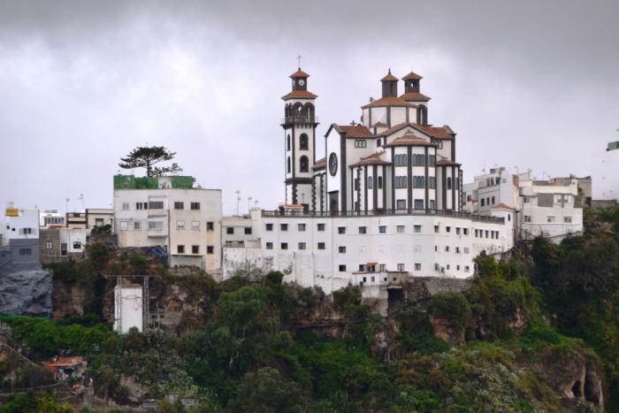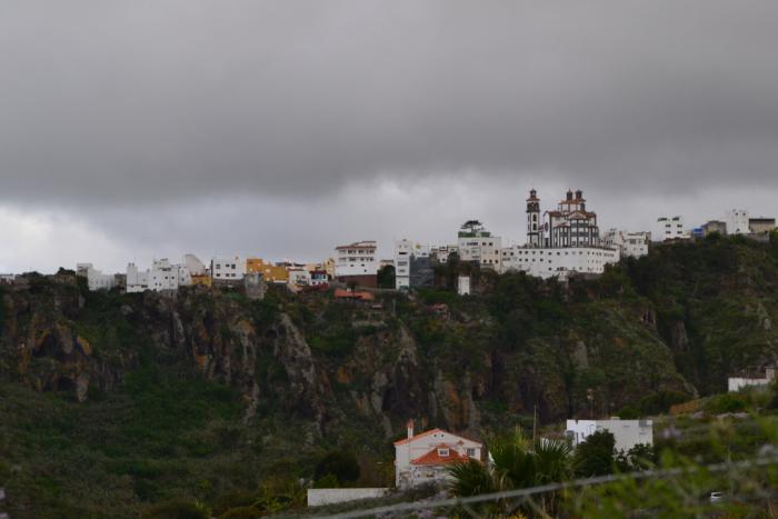 В данном случае хорошо, что мы вспомнили о наличии какой-то очень местной дороги вдоль барранко Мойя, по которой пробирались четыре года назад — она выручила и в этот раз. Заодно полюбовались еще раз красивым собором Нуэстра-Сеньора-де-ла-Канделария с противоположной стороны ущелья: