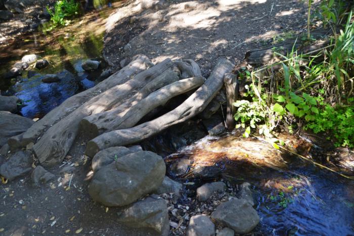 Идти по тропе практически везде легко и приятно даже в жаркий день: маршрут проложен вдоль русла ручья, в густой тени.