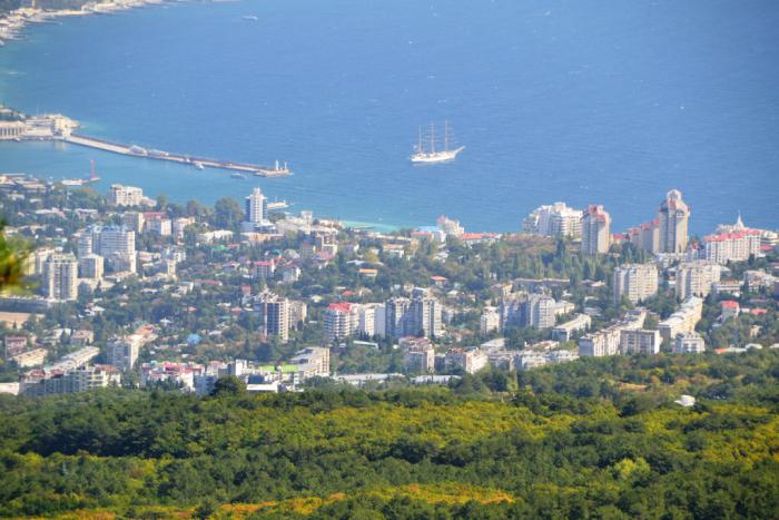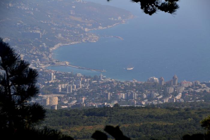 С высоты 865 метров над уровнем моря Ялта раскидывается внизу амфитеатром:
