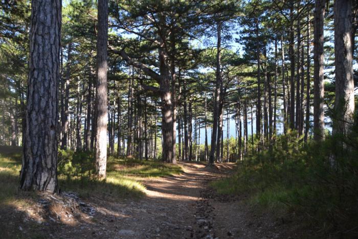 О возможности спуститься с Ай-Петри вниз до Севастопольского шоссе написано было во многих интернет-источниках, нам из нескольких обозначенных вариантов больше всего подходила Кореизская тропа. Как видно из названия, она ведет с вершины в приморский поселок Кореиз. MAPS.ME ориентировали на 9 километров пути с вершины до нашего места жительства в Гаспре с перепадом высоты более 1000 метров, время в пути – около 2 часов.