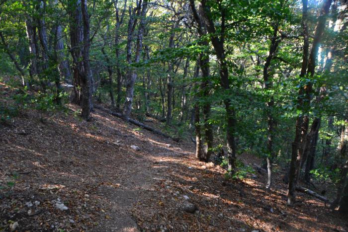 Действительно, спустя пару сотен метров тропа ныряет под плотно смыкающиеся над головой своды деревьев: