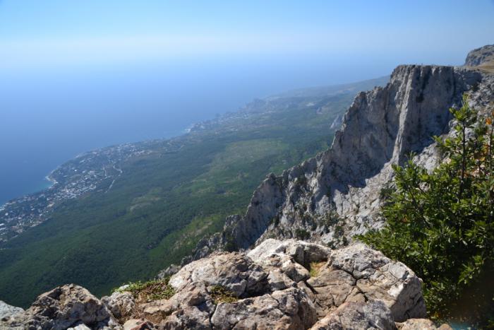 Что касается сложности маршрута – спуск в самом начале пути довольно крутой, вряд ли детям до 10 лет этот маршрут подходит. В целом, ничего сверхсложного нет, зато как звучит: «Пешком спустились с Ай-Петри»! Когда мы товарищам по санаторию озвучили, почему пропустили обед, они нас стали считать отчаянными людьми и выдающимися спортсменами. Тем более что мы и к морю ходили пешком, не пользуясь автобусом, курсирующим в течение дня по маршруту «санаторий – пляж».