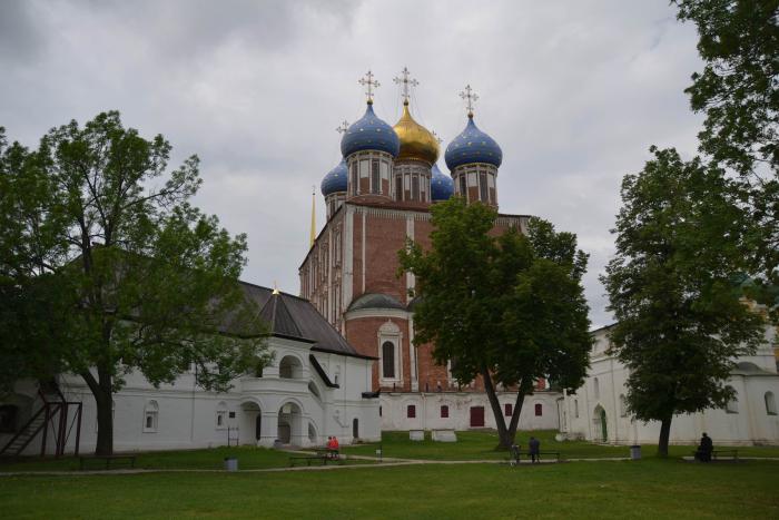 Рязань слегка касается Оки – река протекает за северной окраиной города, но и в Рязанском кремле обозначено ее присутствие: превращенная в глубокий затон река