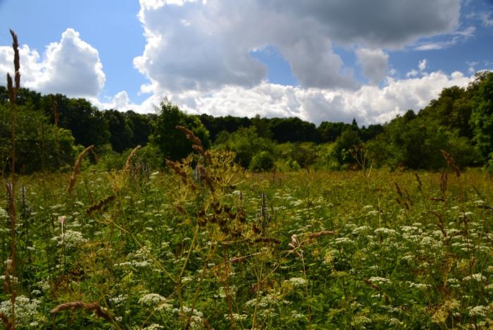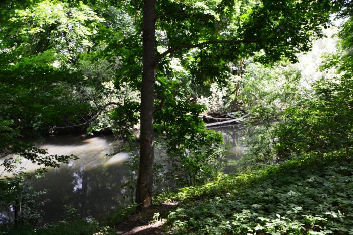 Через звенящий от насекомых луг можно выйти к месту, где раньше на речке говорящим названием Чернь находилась купальня.