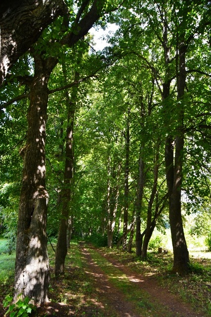 Две аллеи из старых вязов и лип ведут вниз, с пригорка, на котором стоит восстановленный усадебный дом.