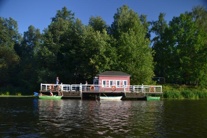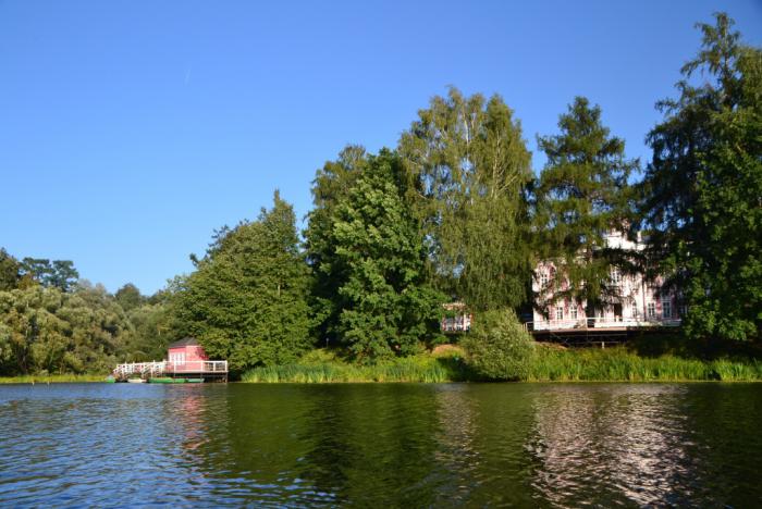 Для меня же наибольшим впечатлением стала получасовая прогулка на прокатной лодочке (200 рублей все удовольствие) по запруженной Вязёмке, где с воды сквозь густую листву просвечивают очертания усадебных построек и старинной церкви: