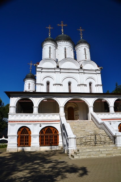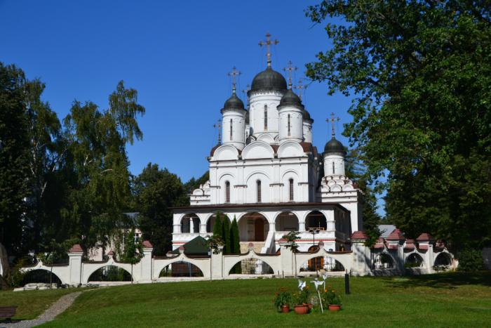 Борис Годунов поставил здесь для себя деревянный терем, напротив него воздвиг каменную церковь на высоком подклете и пяти верхах, а еще запрудил мелкую речку Вязёмку.