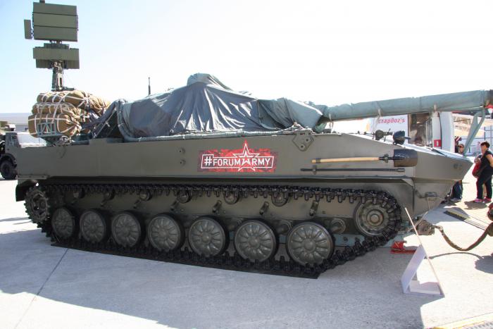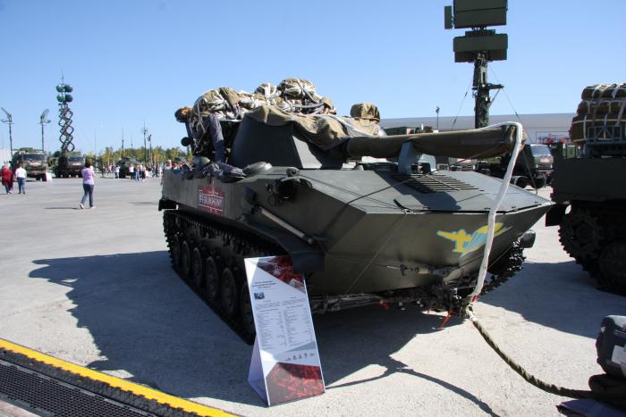 Далее выстроены в линейку боевые машины десантников, оснащённые паращютами.