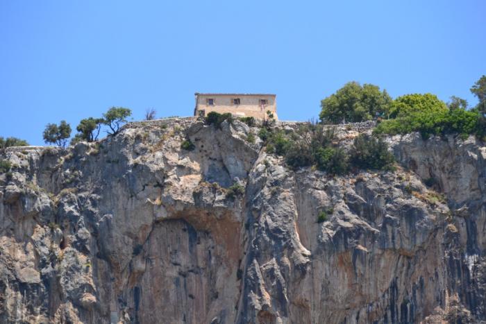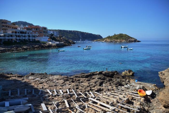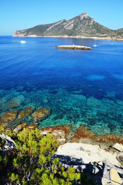 Это крошечный остров, своими очертаниями напоминающий дракона, расположен у западного Побережья Майорки. Чтобы его увидеть, в навигаторе мы забили название небольшого поселения Sant Eim.
