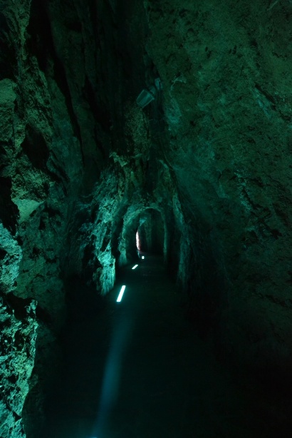 Выйдя из второго тоннеля, мы оказались в месте, которое мне трудно описать, а фотографии вообще не передают! Представьте огромный каменный мешок, совершенно круглое в плане пространство, из которого в одну сторону уходит узкое ущелье, а с другой стороны – узкий выход в море: