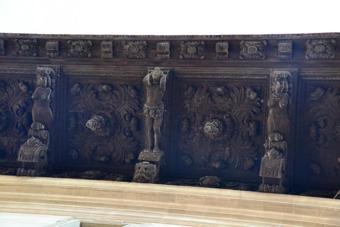 Третий зал музея, названный Барочным, наиболее пышный. Он очень необычной эллиптической формы, с куполом, покрытым искусной резьбой (сорри за качество фотографий – использование вспышки неуместно и вполне закономерно запрещено):