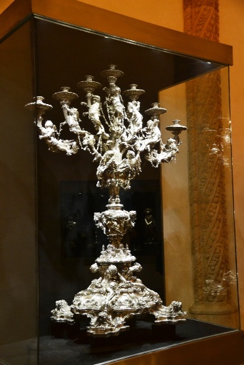 Пара огромных серебряных канделябров в человеческий рост, выставленная в этом зале, весом в 243 килограмма каждая!
