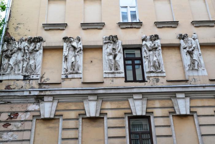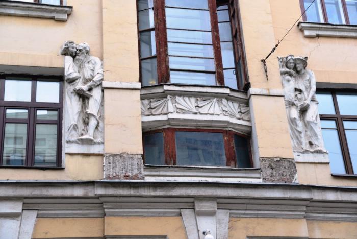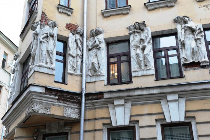 На фризах дома можно увидеть классиков русской литературы – Пушкина, Гоголя, Толстого – в обнимку с музами.