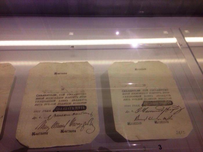 Поддельные ассигнации чаще всего печатались достоинством в 25 рублей, реже — в 50, но долго в обороте они не находились, поскольку в них обнаружили грубые опечатки. Вместо слов «государственная ассигнация» было отпечатано «госуларственная ассигнация». В ряде экземпляров встречалось слово «холячею» вместо «ходячею».