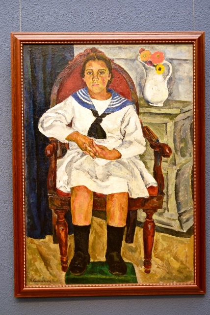 Работ Гончаровой в филиале Третьяковской галереи несколько, среди них – и самые знаменитые, включая работы с павлинами и автопортрет в тюрбане.