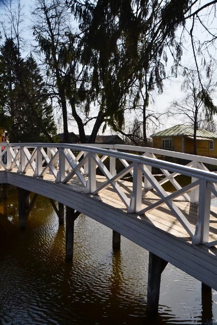На этом экскурсия внутри дома завершилась – и мы перешли по деревянному мостику к зданию вотчинной конторы – так требовала логика повествования о пребывании Пушкина в имении.