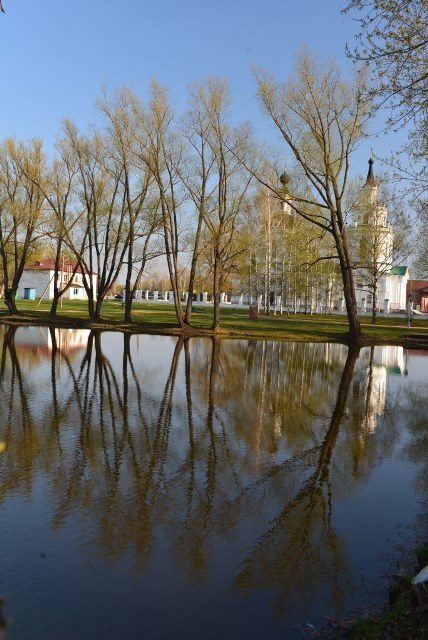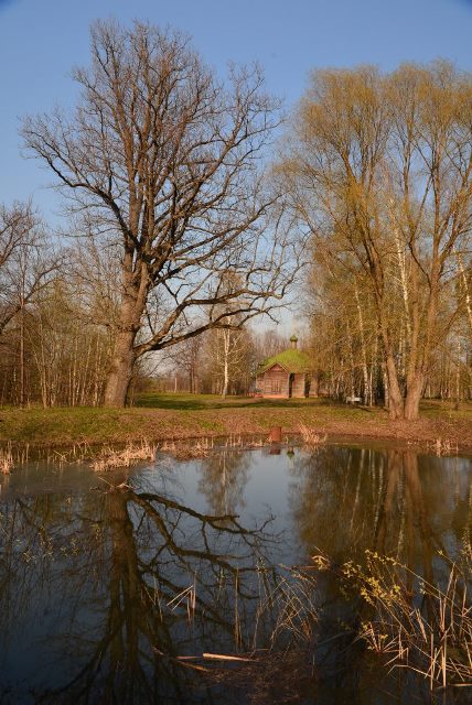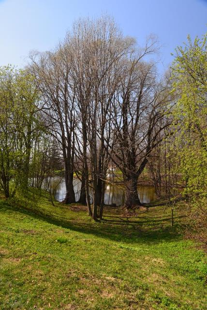 Спустя несколько минут мы уже выходили из машины на пустой парковке: вокруг только занимающиеся первыми намеками на листву деревья, тихий пруд и несколько покосившихся домиков.