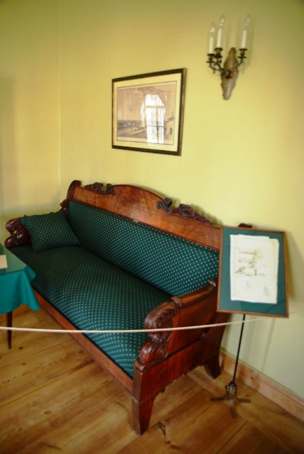 В мемориально-бытовой экспозиции мы видим диван из господского дома и… неизменный ломберный столик!