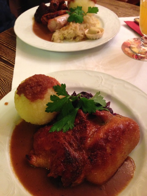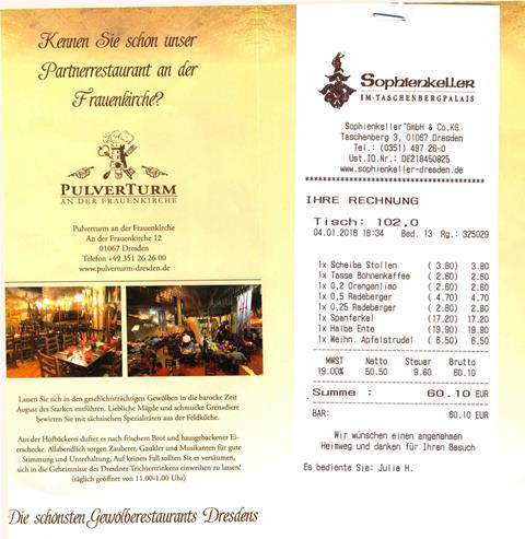 Поэтому с полным основанием вознаградили себя сытным ужин в колоритном туристическом месте – ресторане прямо напротив выхода из корпуса собрания фарфора в Цвингере под названием .