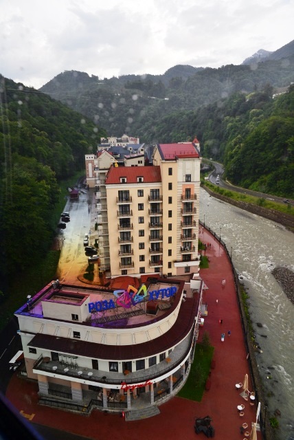Задерживаться с отправлением на Роза Хутор, где находится нижняя станция канатного подъемника «Альпика-Сервис», не стоило: последний спуск был в 17.30.Тем более, что начал дождик накрапывать. Мы и сели.