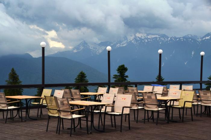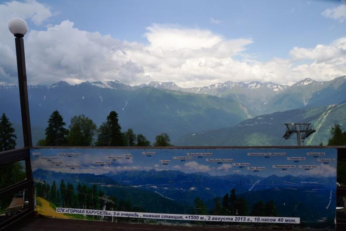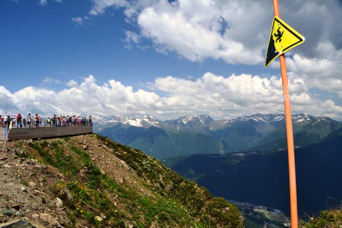 Первая остановка – Роза Плато, высота 1170 метров, с обзорной площадкой с видом на горную олимпийскую деревню.