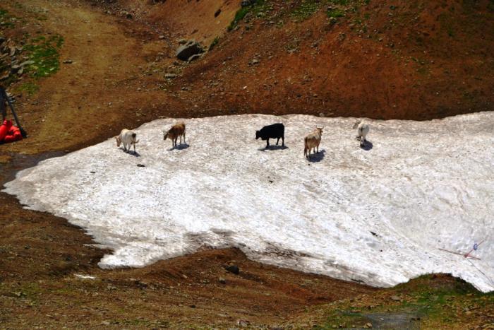 Даже коровы спасались от жары на снегу.