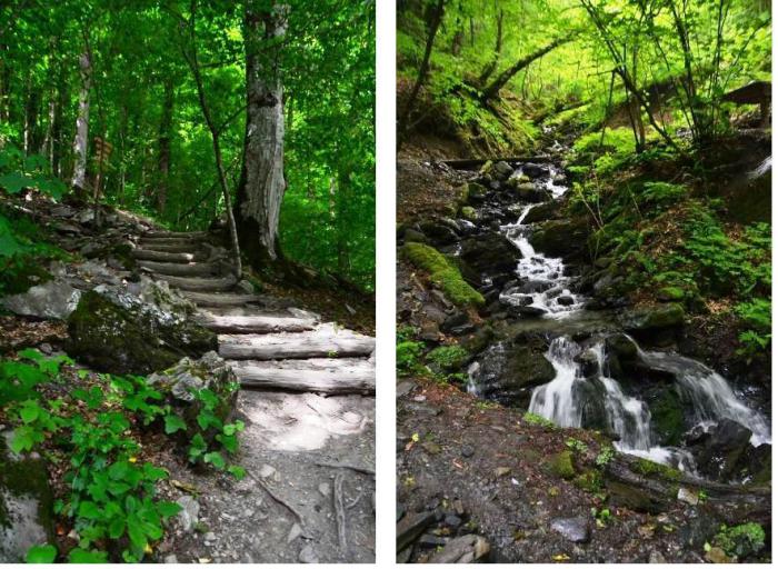 Не знаю, кто маркировал тропы по степени сложности, но ни среднее, ни большое кольцо у меня не ассоциировались со средней степенью сложности маршрута: перепад высоты довольно ощутимый, идти было тяжеловато. Но зато густые заросли и множество родников и водопадиков по маршруту делают знойный день на тропе здоровья свежим и прохладным. Нам, правда, повезло прогуляться по тропе под дождем.