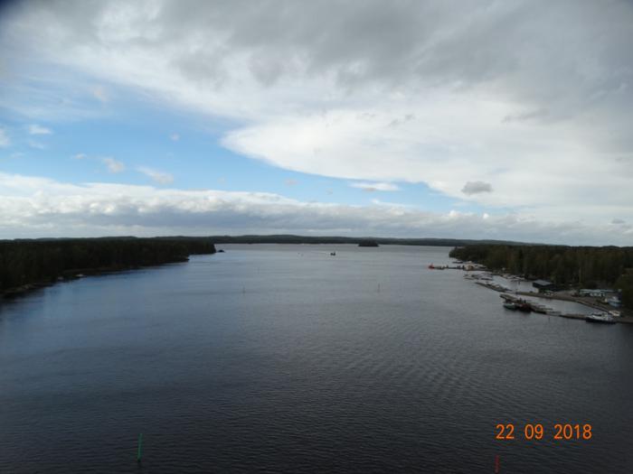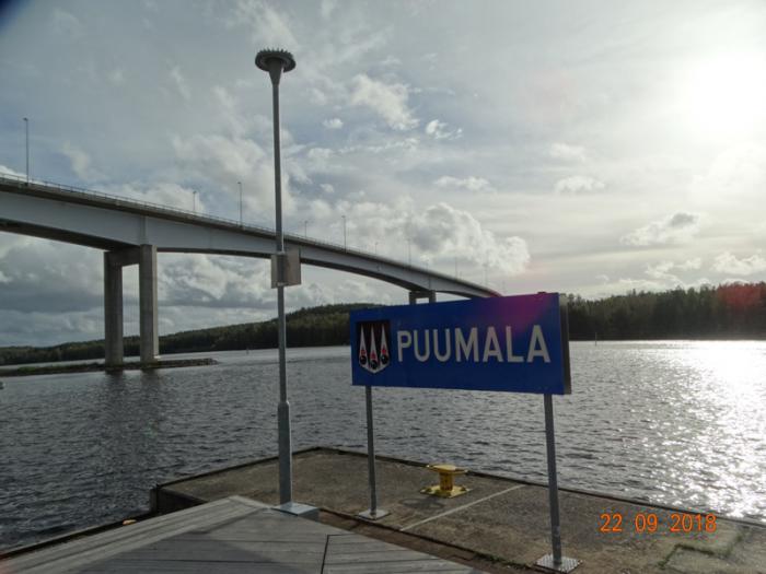 По дороге домой проезжали небольшой финский городок Пуумала. В этом городке есть очень интересное сооружение. Это мост над Сайменским озером длиной около 780 метров. Его построили в 1995 году.