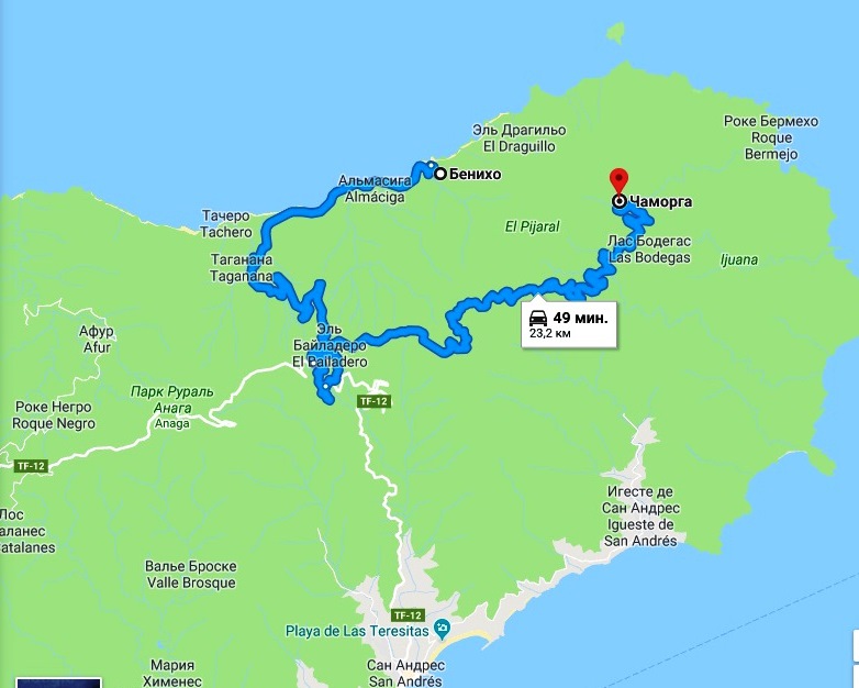 из Чаморги/Chamorga до маяка Анага – и обратно.