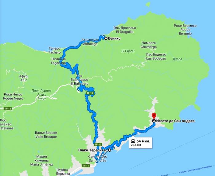 Чтобы попасть к исходной точке маршрута, ориентироваться надо на соседствующий со столицей Санта-Крус-де-Тенерифе городок Сан-Андрес.