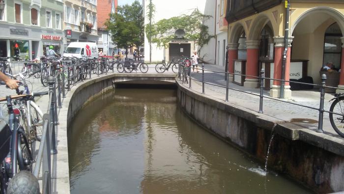 Речка течёт прямо под зданиями.