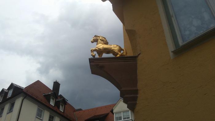 Кемптенские ворота. 1393 год. В 1543 через них в город проник Карл Пятый, возглавлявший пятитысячное испанское войско. Пусть лёжа /опять же восстановленное/, но не могу удержаться. Здесь испанцы победили немцев!