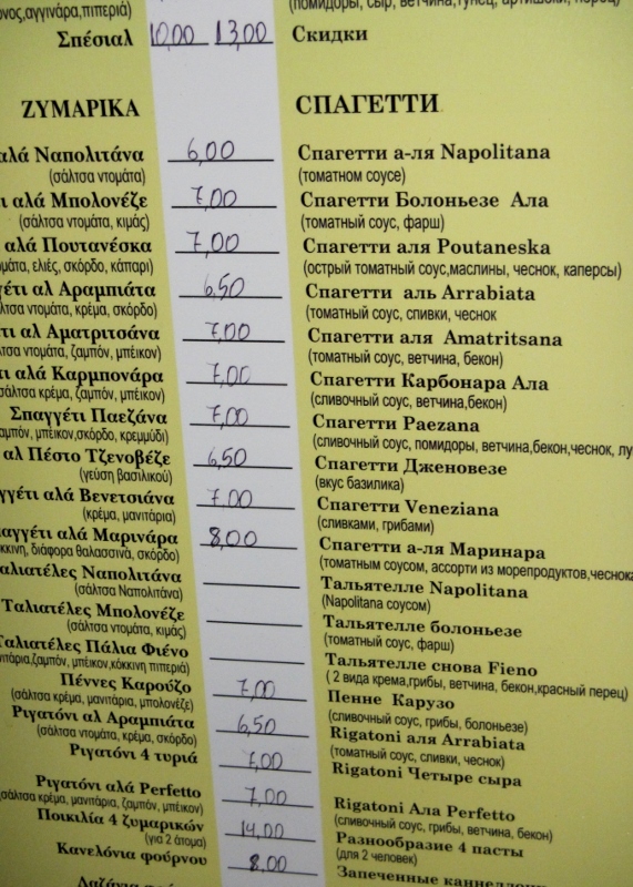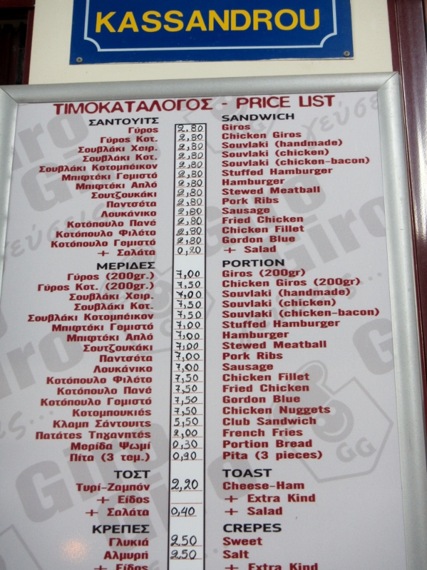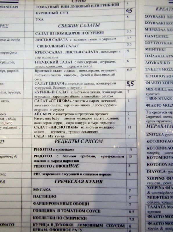 Всё познаётся в сравнении. Три недели назад приехал из Финляндии, так греческие цены по сравнению с финскими просто детские. Уже это радует. Согласен по-поводу фаст-фуда, да ещё запить его какой-нибудь колой, так это… Жалко сейчас публично выражаться нельзя. Я с боями даже пятнадцатилетнего сына отучил от этой «гадости», обильно сдобренной глютаматом натрия для вкуса.