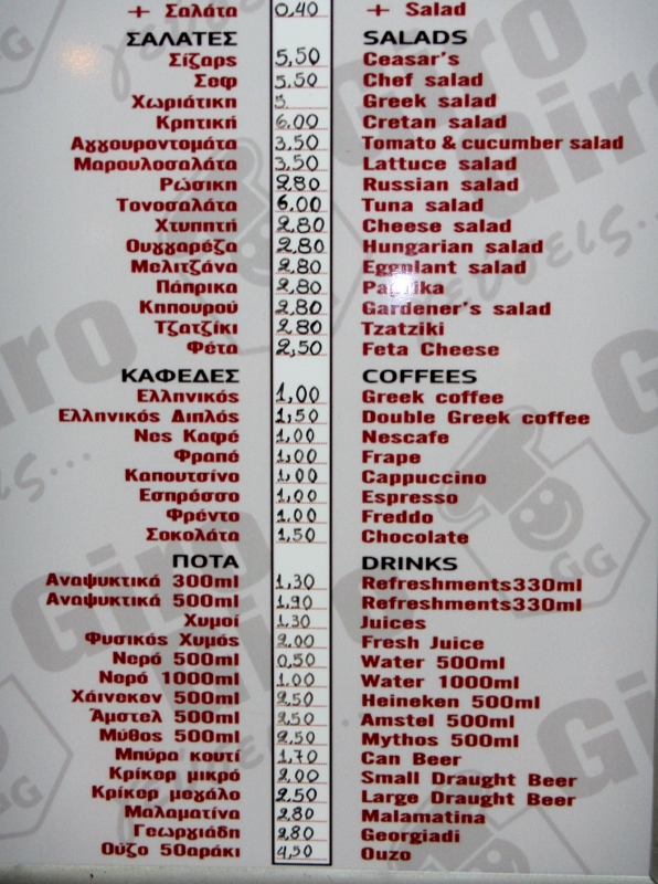 Фастфуд имел в виду гирос. Пита гирос — в лепешке или гирос просто на тарелку. В общем, пита гирос как у нас шаурма, но в толстой лепешке, завернутой кульком и можно есть. А порция на тарелке это очень даже неплохое блюдо с картофелем фри и салатом. А мясо — это да, настоящая еда. Сейчас «маринуется» свинина на косточке и кебаб ждет вечера. Так что, подниму вечером бокальчик за здоровье форумчан :)