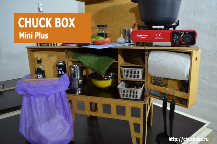 Конструкция модульная, ящик в ящике. Все собирается в один ящик, а вся кухонная утварь хранится внутри. Установка 1 минута.