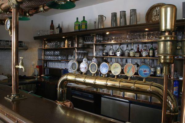 Внутри заведения очень интересный зал, с медными стилизованными чанами, барная стойка с такими же медными элементами. На стенах – старые фотографии, дипломы, свидетельства.