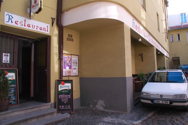 на улице Na perstyne 7. Ориентир – вторая улица, которая пересекает Вацлавак в его начале (в противоположном конце, там где памятник, будем считать завершением) называется Narodni. На угол от Tesco ее и находится нужная нам Na perstyne. Это второй перекресток от Вацлавской площади.
