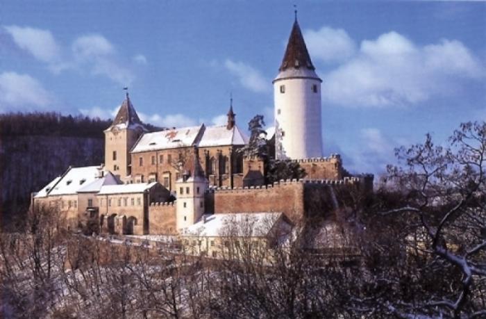 Замок, построенный в XIV веке и перестроенный в XVII в. В стиле ренессанс. Одним из могущественнейших родов Чехии – Шварценбергами. Внутри замка исторический архив, квадратный внутренний двор с павлинами и котами, замок окружен парком в английском стиле. Можно посетить конюшни, где выставлены экспонаты, связанные с историей разведения лошадей в феодальных поместьях, а также подвалы, полные привидений. В замке две экспозиции: ренессансные интерьеры Рожмберков и покои Шварценбергов конца XIX века. Как и в Конопиште, имеется зал с охотничьими трофеями. Имеется в замке и свое привидение.