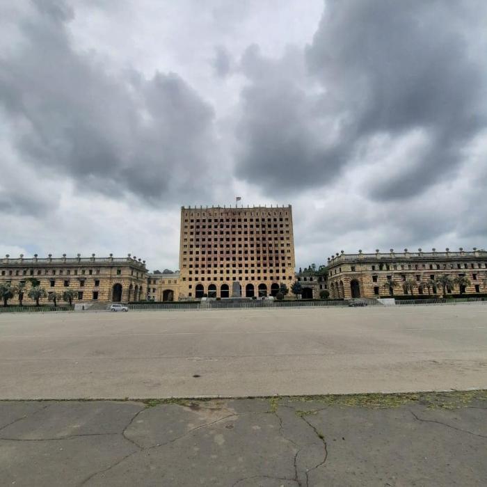 Но больше всего вогнало в тоску здание Верховного Совета Абхазской АССР. Огромное красивое здание без единого целого окна, а на крыше реет флаг Абхазии