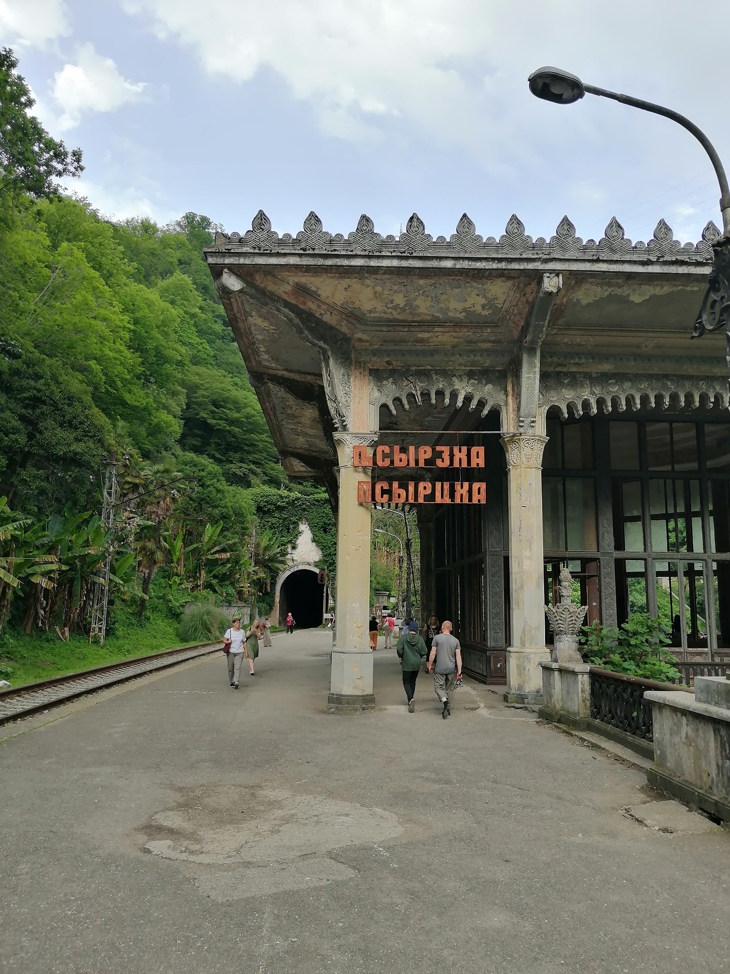 В Абхазии не осталось ни одного целого вокзала. Они все разрушены. Это касается и Гудауты и Нового Афона и Сухума. А вокзалы красивые — сталинский ампир